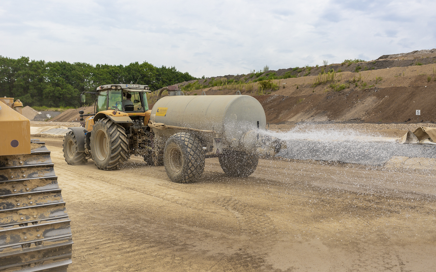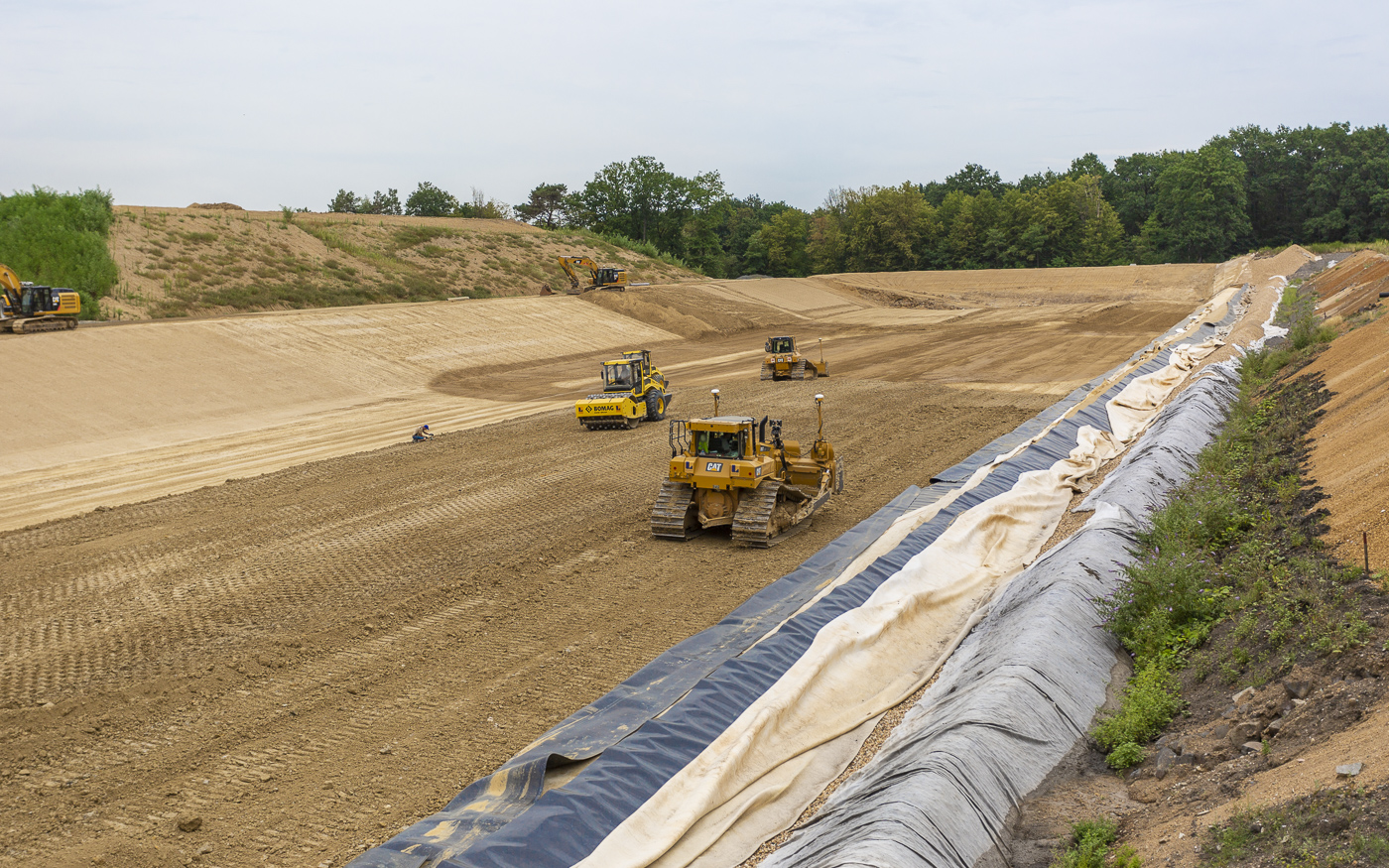 Herstellung einer Oberflächen-abdichtung auf der Deponie Ahaus-Alstätte III. 70.000m³ Erdbewegungen im Auf- und Abtrag inkl. teilweiser Aufbereitung der Böden, 21.000m² Auflagerausgleichsschicht, Bentonitmatte, KDB, Entwässerungs-schicht, Vliese und Reku-Schicht.
